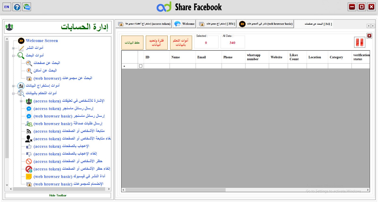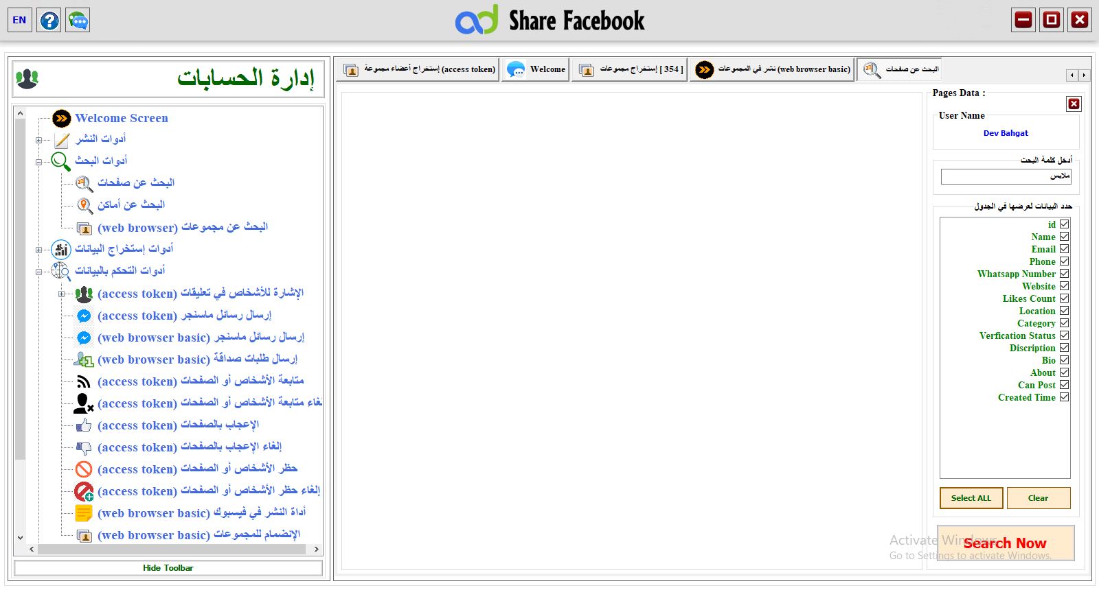 تمكنك هذه الاداه من البحث عن صفحات في شتى المجالات وإستخراج عملائها والمتفاعلين معها ومحتويات منشوراتها