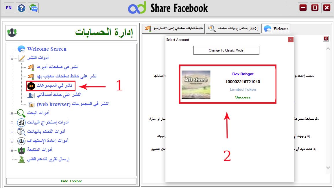 تتيح لك الأداة نشر منشورك في كل المجموعات بضغطة واحده فقط بنصوص وصور