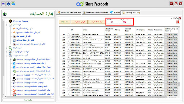 نختار الفلاتر التي تناسبنا سواء عدد الاعضاء او كلمات دلاليه في اسم المجموعة او وصفها وغيرها ثم نضغط علي تحديد البيانات حسب الفلاتر